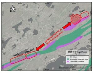 Power Metallic has been exploring multiple zones during the winter 2025 campaign, including the Lion Zone, Nisk Zone, Nisk East Zone, and Tiger Zone. The targets of the winter drilling extends over approximately 8km of strike of favorable stratigraphy. This news release is for Lion Zone drill holes (Figure 1).