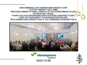 Hemisphere Energy Corp. (OTCQX: HMENF)(TSXV: HME) Pays a 10% Combined Dividend Yield in 2023