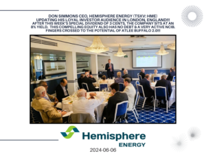 Hemisphere Energy (TSXV: HME) in London, England!!! After this week’s special dividend of 3 cents, the company sits at an 8% yield…