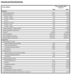 The Company is well positioned with strong momentum to build upon for the balance of the year as the majority of new production from the Company’s first quarter capital program came on-line in late March and early April. Minimal capital spending is planned for the second quarter, and the combination of higher average production with stronger realized oil prices which started in Q2 2024 is expected to result in significant FAFF generation and net debt reduction.