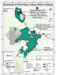Figure 1. Location map showing LithiumBank’s Boardwalk and Park Place projects.