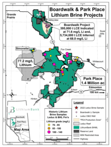 LithiumBank Resources Corp. (TSXV: LBNK) (OTCQX: LBNKF), is a publicly traded lithium company that is focused on acquiring district-scale landholdings with prospective lithium brine geology, efficiently de-risking the assets, and structuring mutually beneficial transactions with major project developers. The Company holds 2,148,963 acres of brown-field lithium brine licences, across 3 districts in Western Canada, including its two flagship projects, Boardwalk and Park Place as well as exclusive use of one of the largest DLE Pilot Plants in North America. The Company’s January 2024 PEA at Boardwalk contemplates the largest annual LCE brine production in North America at 34,005 TPA (LHM).